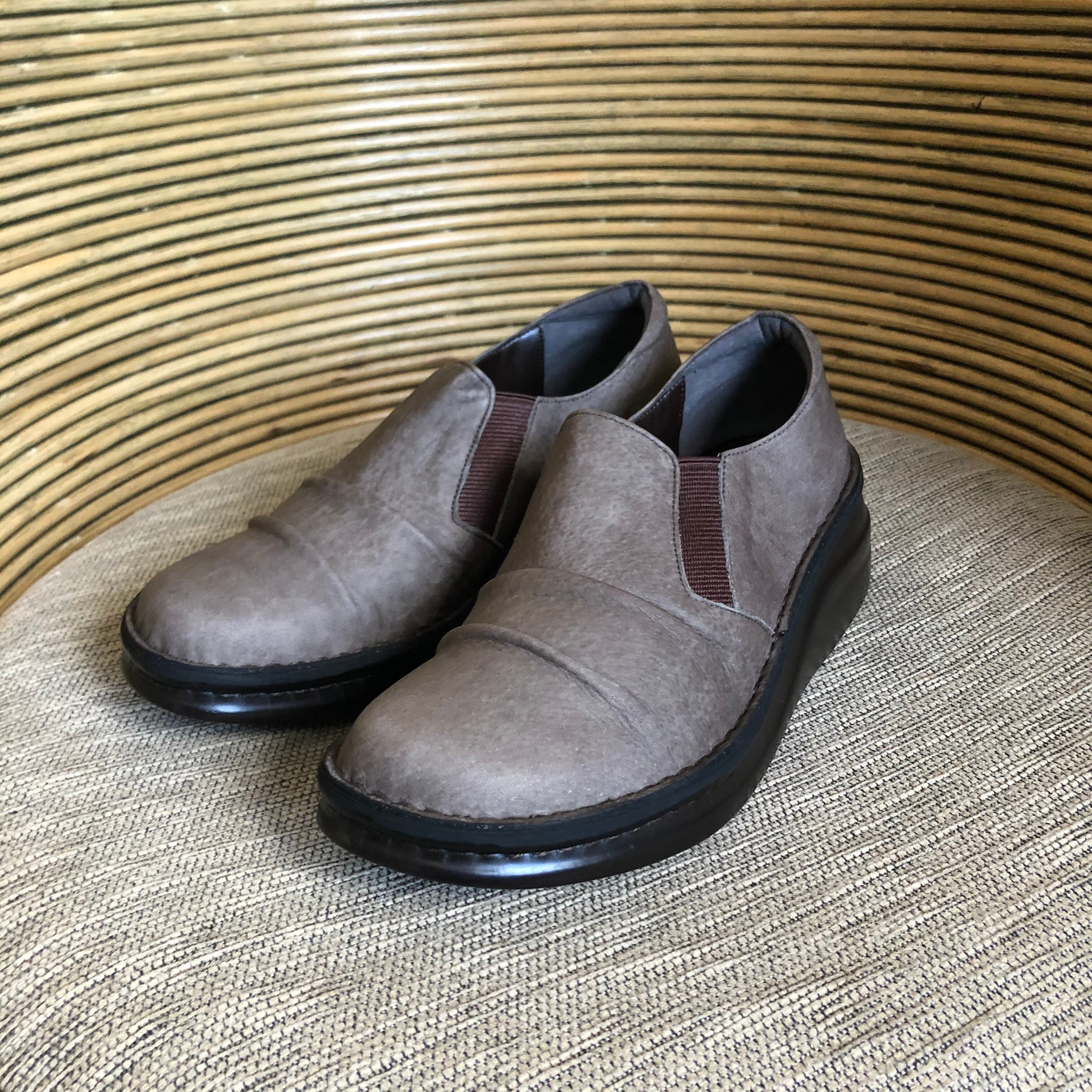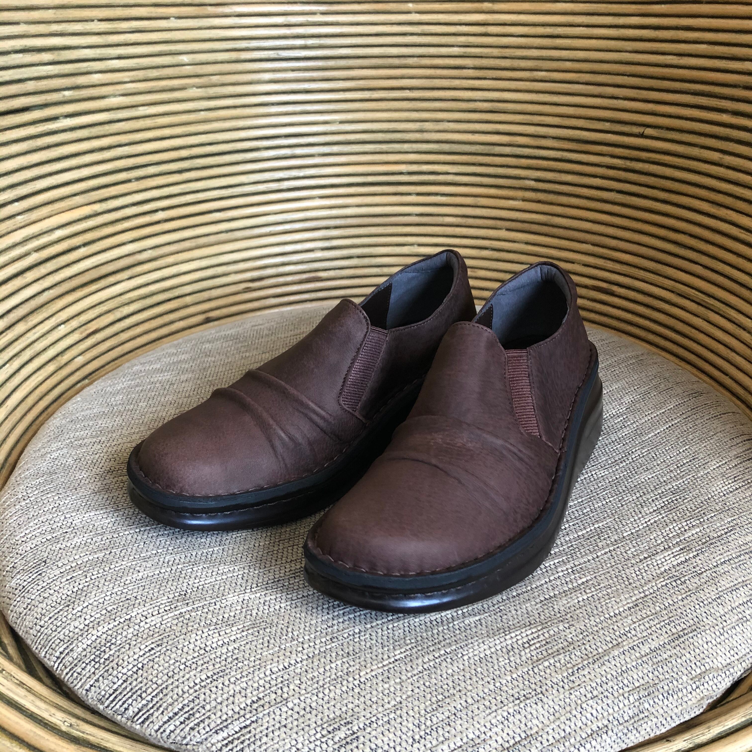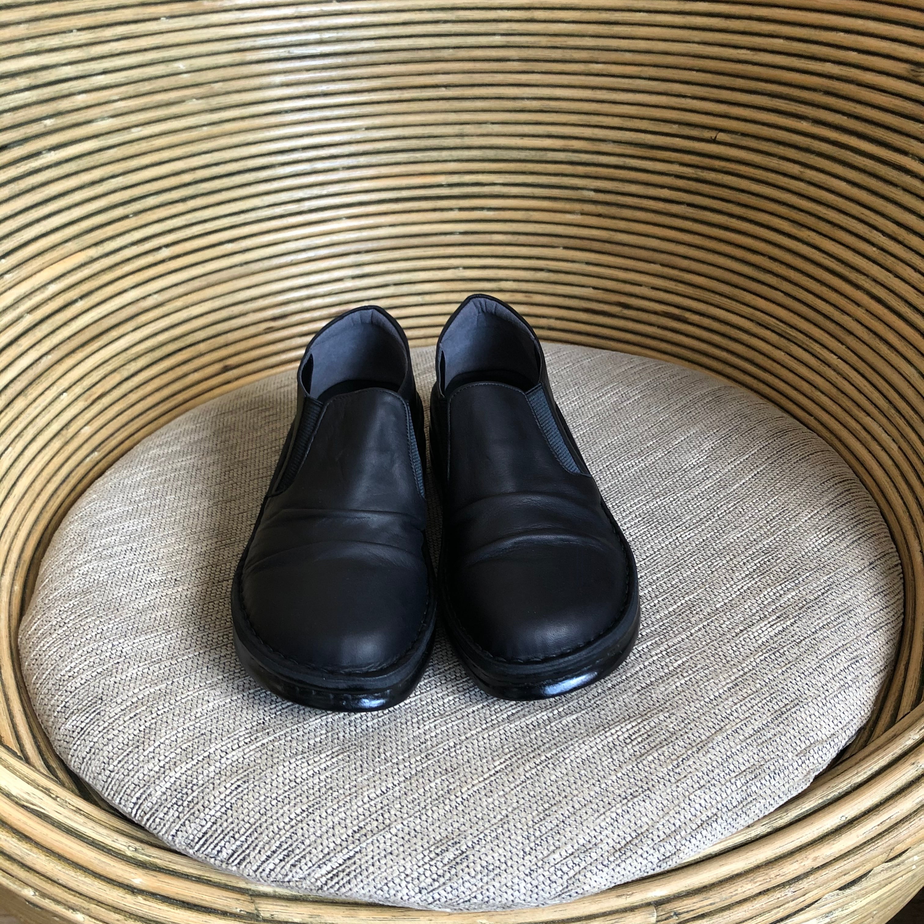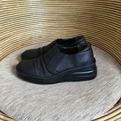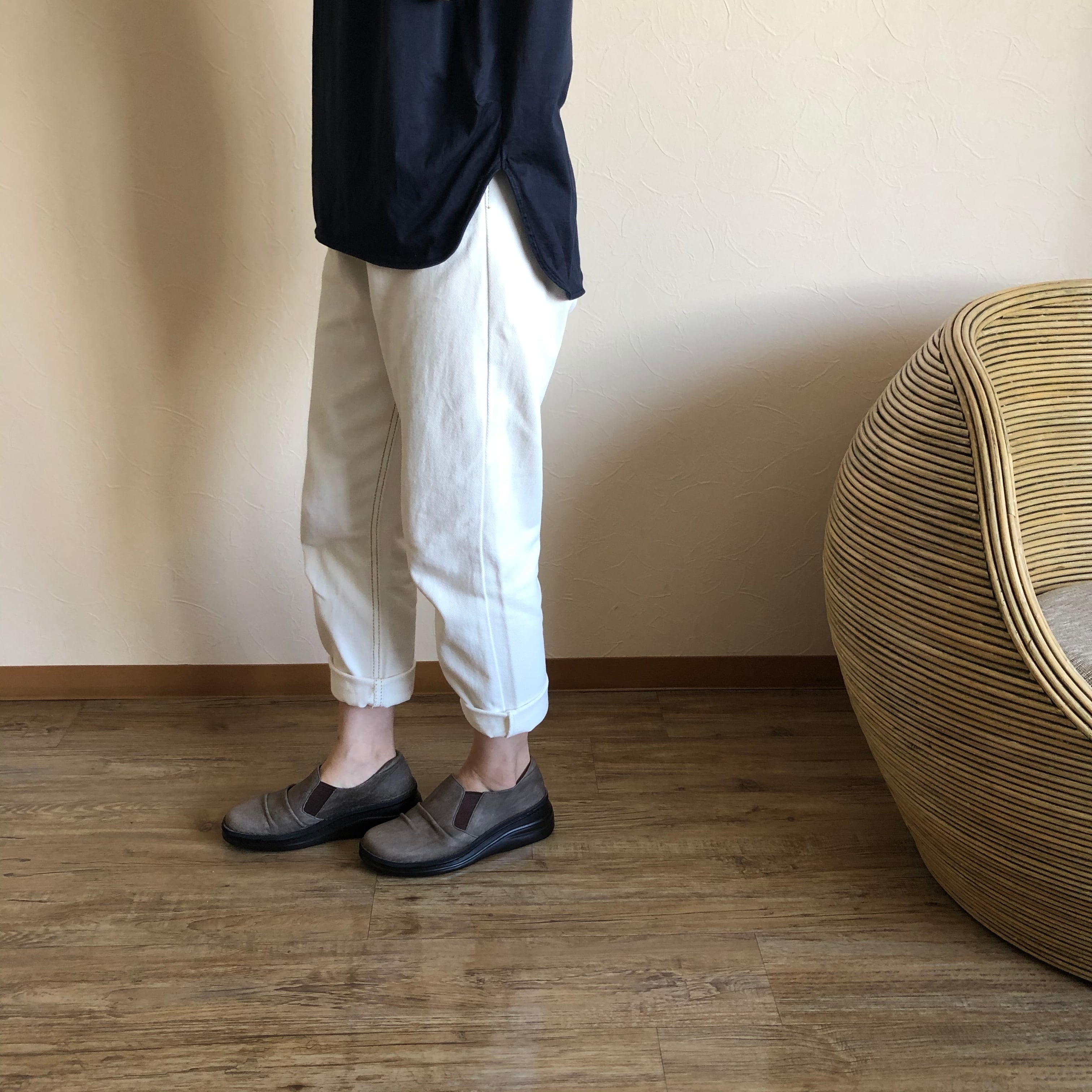 土踏まずのアーチをしっかり支えてフィットする形状で足にかかる体重と歩く時の地面からの衝撃も分散してくれます。履き口ゴムがあるので、スリッポンとして履けて